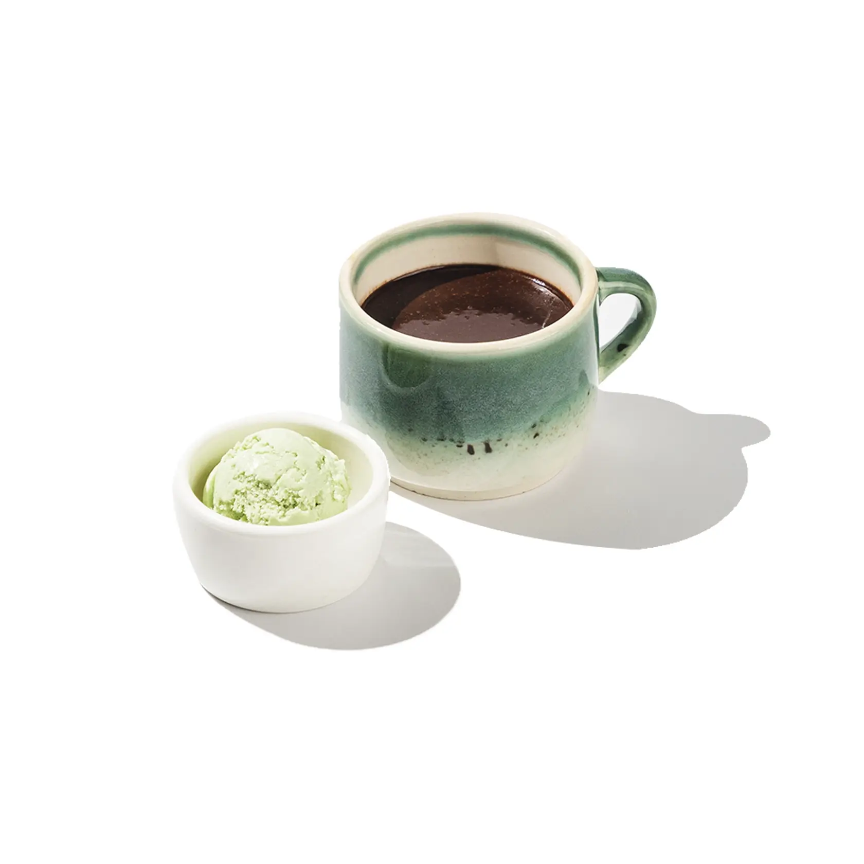 фисташковое мороженое, шоколад, сироп мята, сливки