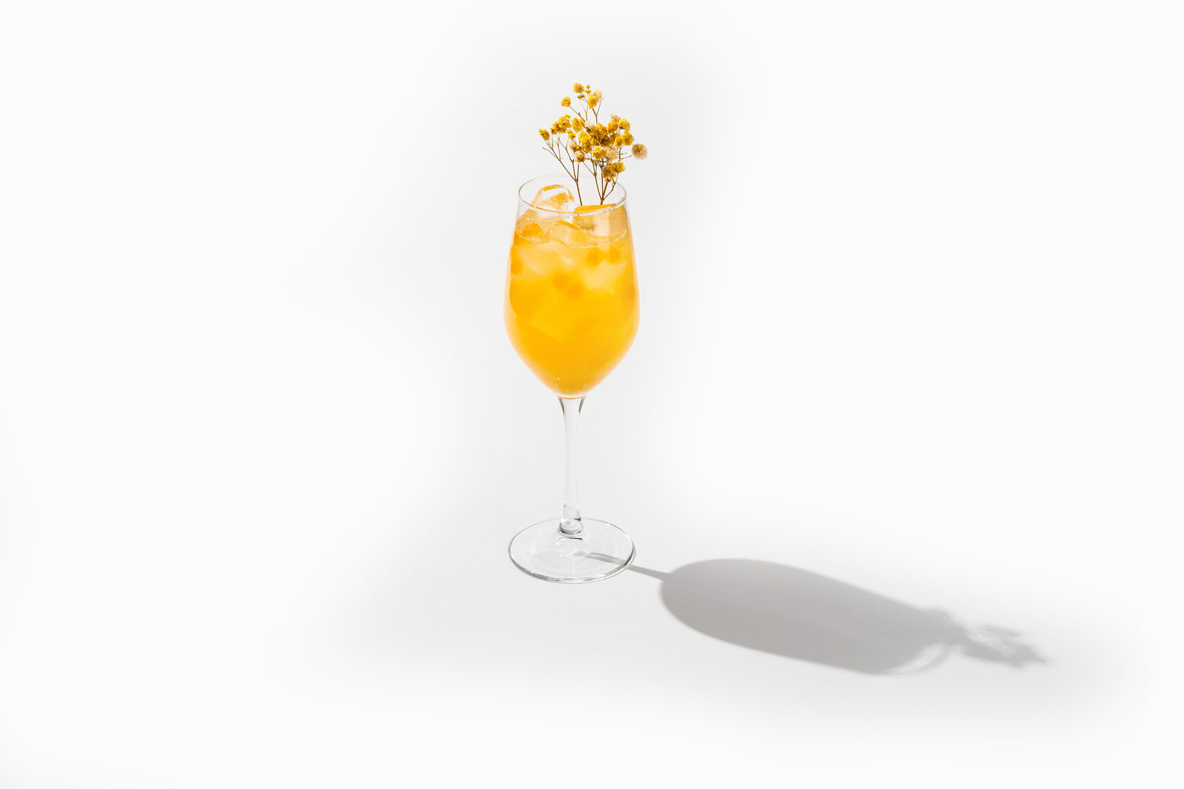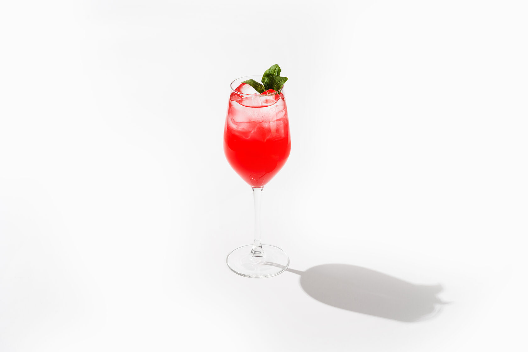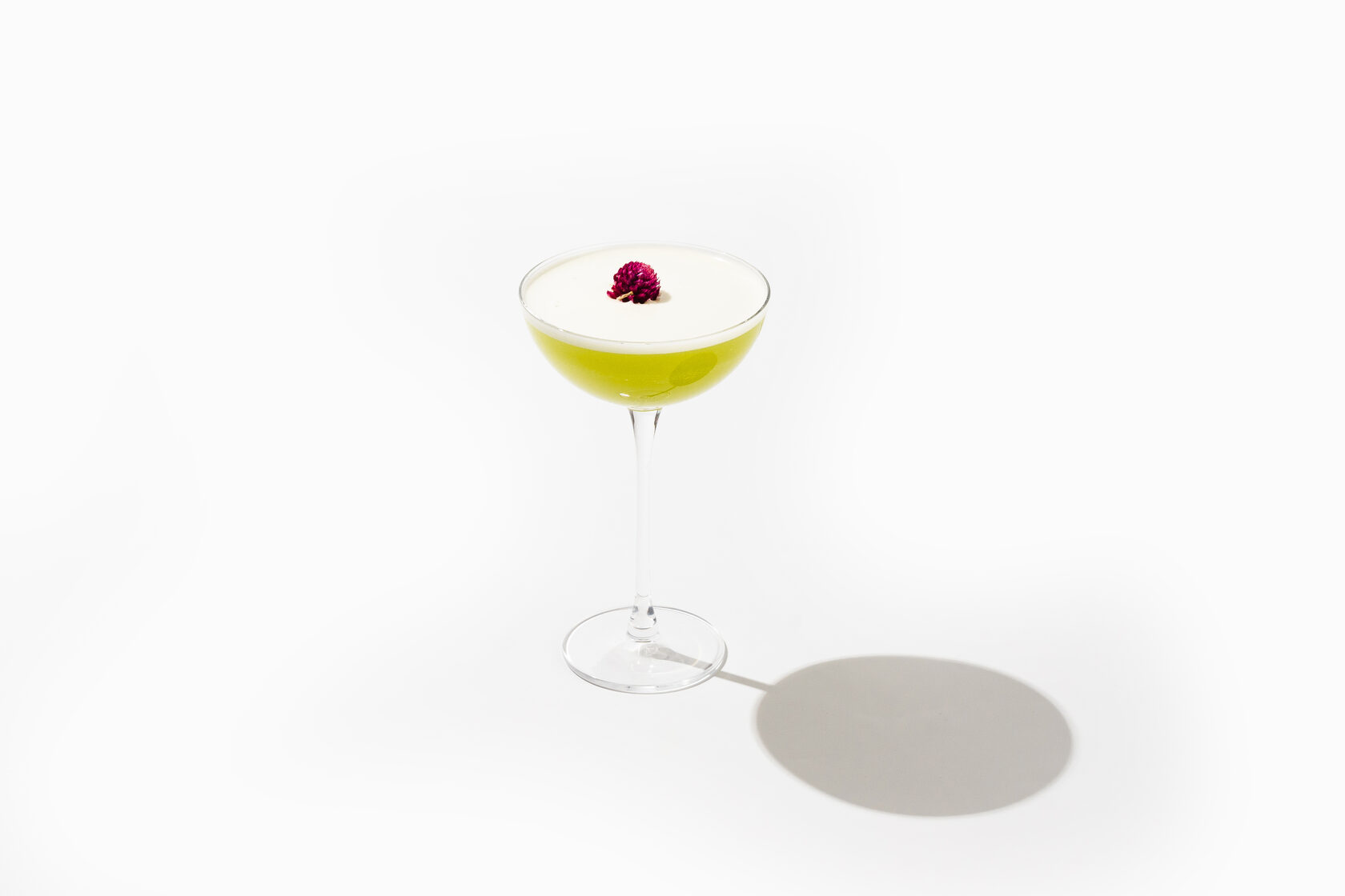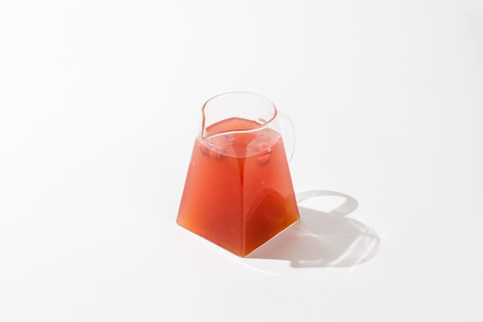 зелёный чай с жасмином, пюре персик, сок персика, сок лимона, ягоды малины