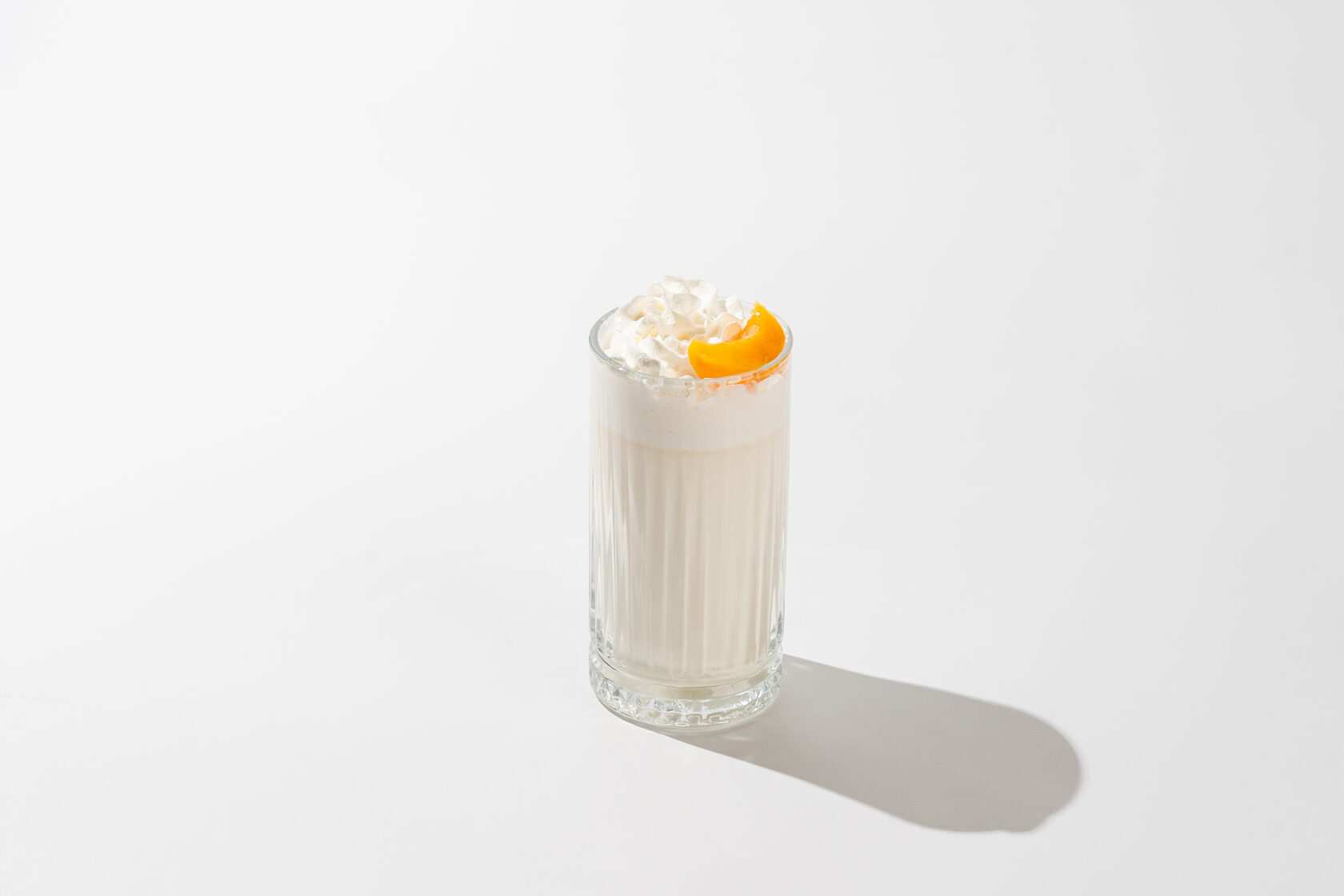 мороженое, молоко, пюре персик, сироп ментол, взбитые сливки