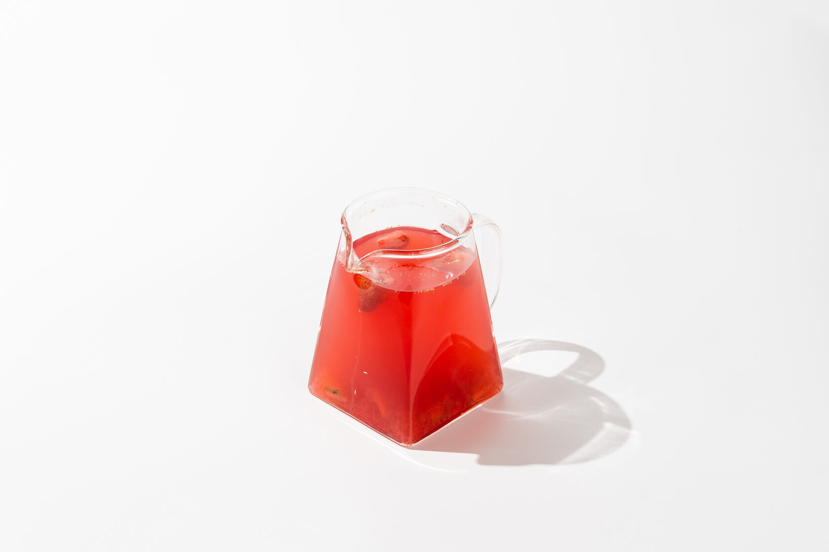 зелёный с жасмином, пюре клубника, сироп груша, ягоды клубники, груша